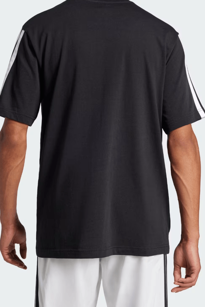 Para um look casual urbano, combine a Camiseta Adidas Essentials Três Listras com calça jeans slim escura e tênis branco minimalista. Acrescente uma jaqueta bomber leve para dias amenos e finalize com relógio esportivo e mochila preta. Ideal para passeios no fim de semana, encontros informais ou momentos de lazer com conforto e estilo.