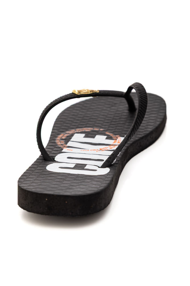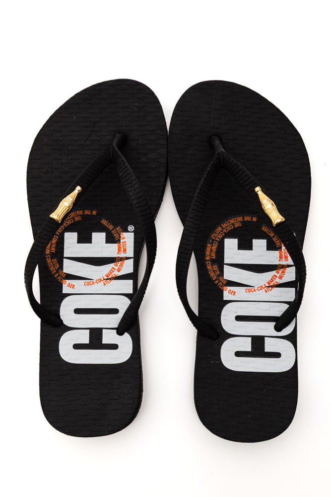 Para um dia ensolarado de primavera, combine o chinelo Coca-Cola Company com vestido midi leve estampado e bolsa de palha. Acrescente óculos de sol e acessórios dourados delicados para valorizar o detalhe metálico da tira. Finalize com uma jaqueta jeans para um toque moderno. Um look fresco, confortável e cheio de atitude.