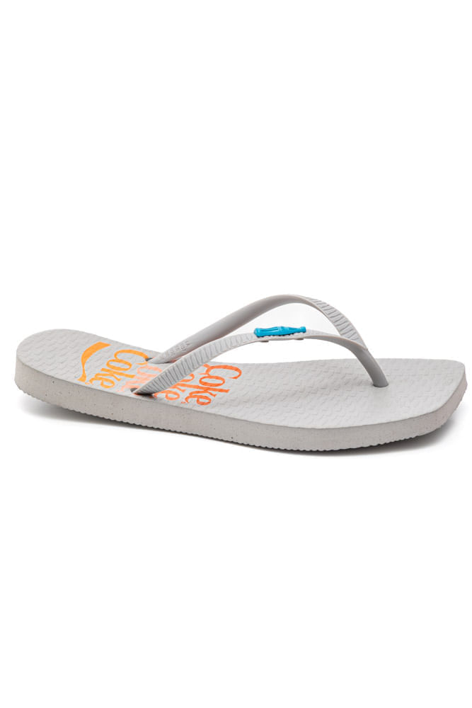 O Chinelo Coca-Cola Feminino Bico Quadrado Cc4586 é confeccionado em PVC de alta qualidade, leve, flexível e resistente, ideal para o uso diário. O solado de borracha antiderrapante garante aderência e segurança em diferentes superfícies. A palmilha traz estampa repetida “Coke” em tons de laranja vibrante sobre fundo cinza suave, reforçando a identidade da marca. As tiras finas em PVC combinam com a paleta e incluem um pequeno detalhe com logotipo em alto-relevo. O formato é anatômico, com bico quadrado e calce simples, sem fechamento. Marca Coca-Cola destacada na palmilha e tira; uso funcional que une conforto, estilo e personalidade urbana.