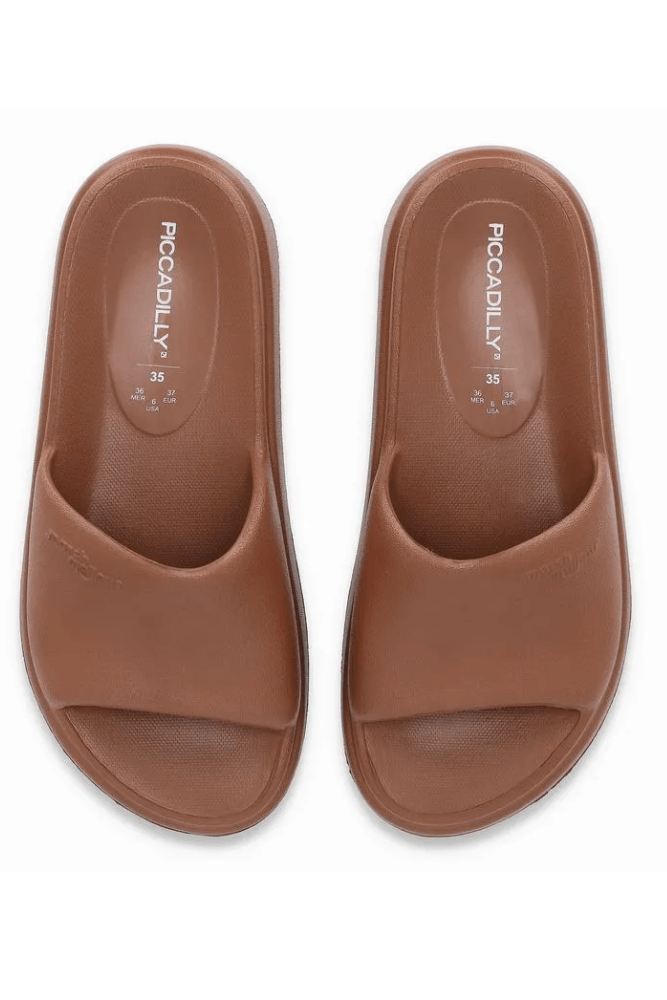 Chinelo Piccadilly Slide Feminino Marshmallow 238003 Marrom