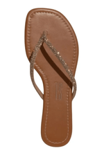 Para um look elegante e moderno com o Chinelo Santa Lolla Rasteira 01F7.438D.0300, combine um vestido midi bege de tecido leve, bolsa tiracolo marrom e acessórios dourados delicados. Finalize com maquiagem natural e coque baixo. O brilho cristal das tiras acrescenta sofisticação, perfeito para um almoço especial ou evento casual chic.