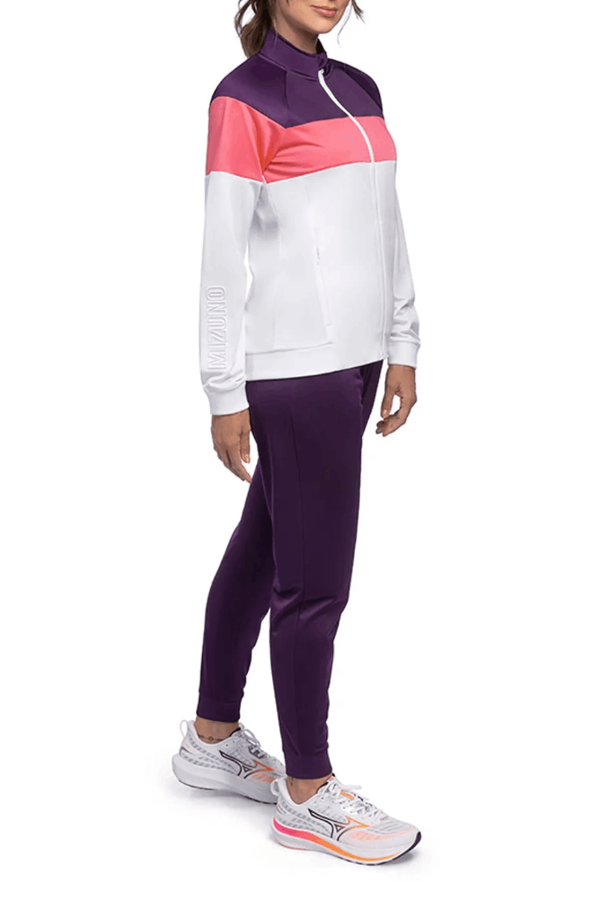 O Conjunto De Agasalho De Treino Feminino Root C. Iii Mifst5463 é confeccionado em malha 100% poliéster, com caimento levemente ajustado ao corpo e corte moderno. Possui estilo esportivo, ideal para treinos e práticas esportivas. O fechamento da jaqueta é em zíper, com gola alta e mangas longas com punhos em ribana para maior conforto. Conta com bolsos frontais com zíper, costuras reforçadas e recortes contrastantes que criam um visual em bloco de cor. O design é clean, com logo bordado e lettering Mizuno em alto relevo na manga. A peça é lisa, sem estampa, e tem barra reta para um acabamento discreto.