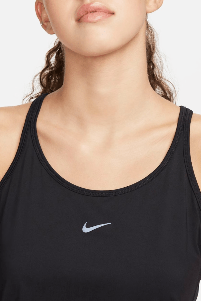Combine a Regata Nike Dri-FIT One Feminina com uma legging preta de cintura alta e tênis de corrida branco para um treino confortável e estiloso. Acrescente uma jaqueta esportiva leve para passeios ao ar livre e uma garrafa de água. Finalize com uma mochila compacta e óculos de sol, garantindo performance, conforto e estilo em qualquer atividade.