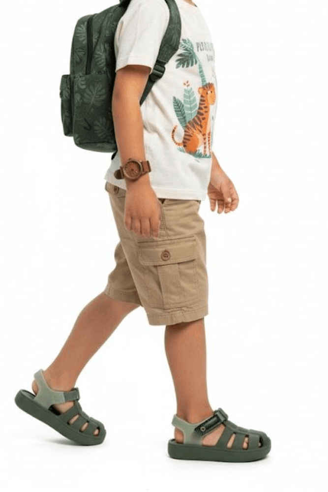 Para um passeio no parque, combine a Sandália Cartago com bermuda em sarja bege, camiseta em malha leve com estampa divertida e boné para proteção solar. Um look fresquinho, confortável e cheio de estilo para seu pequeno curtir o dia com liberdade e segurança, enquanto mantém os pezinhos protegidos e bem acomodados com o charme da Cartago.