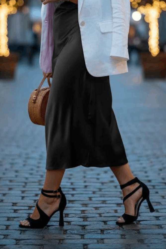 Para um look elegante e marcante, combine a Sandália Chá de Mel Salto Taça com um vestido midi preto ou branco, clutch metálica e brincos longos. Finalize com maquiagem suave e batom vermelho para harmonizar. Ideal para eventos noturnos, jantares ou festas onde o charme e a sofisticação são indispensáveis.