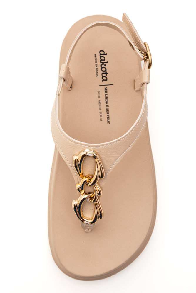 Para um passeio de fim de tarde ou encontro casual, combine a Sandália Dakota Papete com vestido midi fluido em tons neutros, bolsa tiracolo estruturada e óculos de sol. Finalize com acessórios dourados delicados para valorizar o detalhe metalizado da sandália, criando um visual leve, moderno e confortável.