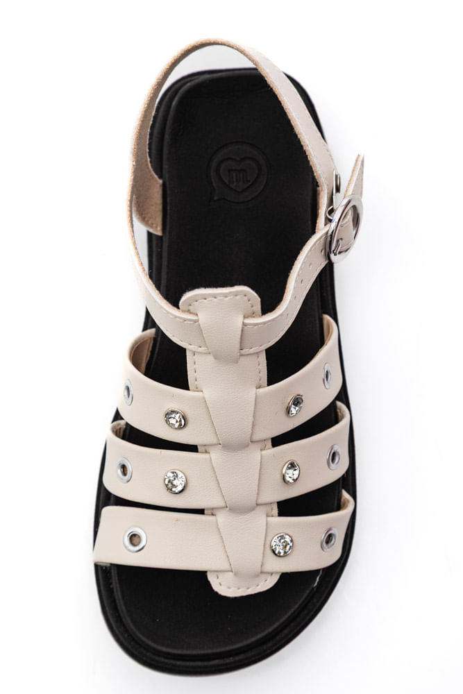 Para um passeio de fim de semana, combine a Sandália Molekinha Papete com um macaquinho floral leve, uma tiara colorida e uma mini bolsa transversal. O look fica charmoso, confortável e ideal para brincar com estilo. A papete garante segurança aos pés e um toque moderno com suas tachas metálicas, perfeita para meninas cheias de personalidade.