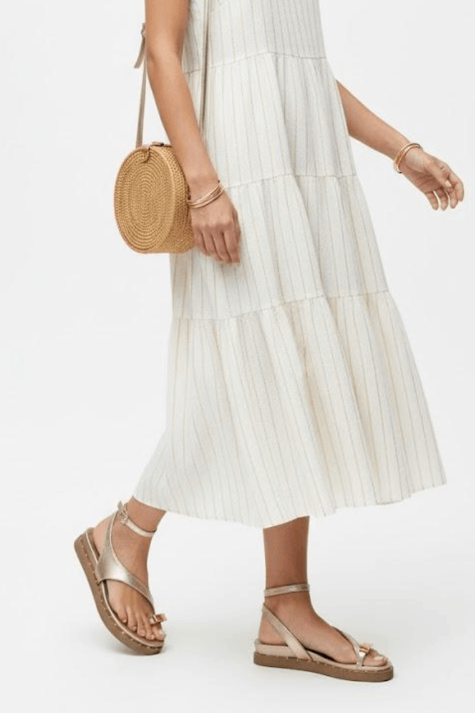 Combine a Sandália Via Marte rasteira dourada com um vestido midi leve em tons neutros, bolsa tiracolo metálica e acessórios delicados para um visual elegante e confortável. Ideal para um passeio ao ar livre ou um jantar descontraído, esse look une sofisticação e praticidade, destacando o charme moderno da sandália em qualquer ocasião.