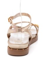 A Sandália Via Marte Rasteira Feminina Em Napa 169-016-01 é a escolha perfeita para quem busca estilo e conforto no dia a dia. Produzida com solado em PVC expandido, oferece leveza e durabilidade, além de um salto de 3,5 cm que garante estabilidade sem abrir mão do conforto. O modelo possui bico arredondado e palmilha acolchoada com acabamento metalizado, que proporciona bem-estar ao caminhar. Seu design se destaca pela tira larga que cruza o peito do pé e pelo detalhe em “toe loop”, que valoriza o visual. O fechamento em fivela ajustável no tornozelo assegura firmeza, enquanto as tachas no solado trazem um toque moderno e sofisticado.