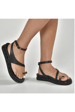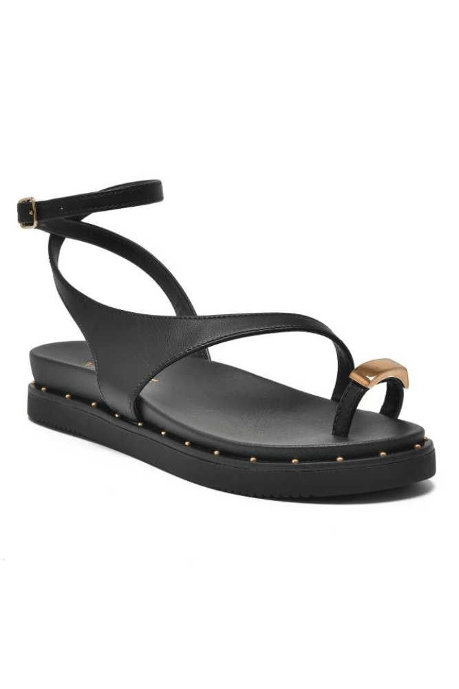 A Sandália Via Marte Rasteira Feminina Em Napa 169-016-01 é a escolha perfeita para quem busca estilo e conforto no dia a dia. Produzida com solado em PVC expandido, oferece leveza e durabilidade, além de um salto de 3,5 cm que garante estabilidade sem abrir mão do conforto. O modelo possui bico arredondado e palmilha acolchoada com acabamento metalizado, que proporciona bem-estar ao caminhar. Seu design se destaca pela tira larga que cruza o peito do pé e pelo detalhe em “toe loop”, que valoriza o visual. O fechamento em fivela ajustável no tornozelo assegura firmeza, enquanto as tachas no solado trazem um toque moderno e sofisticado.