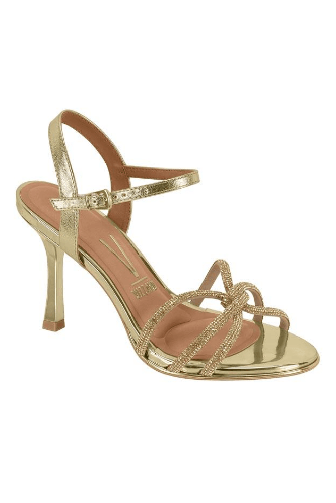 A Sandália Vizzano Salto Fino Feminina Metalizada 6552.203 é sinônimo de elegância e sofisticação. Confeccionada em sintético de alta qualidade, traz fechamento no tornozelo que proporciona firmeza e ajuste perfeito, além de calcanhar aberto que valoriza o visual. O bico fino alonga a silhueta, enquanto o salto fino de 9 cm acrescenta feminilidade e requinte. Seu cabedal com aplicação de strass garante brilho e destaque em cada passo, ideal para festas e ocasiões formais. A palmilha em PU acolchoado oferece conforto prolongado, e o solado em borracha TR garante segurança ao caminhar. Um calçado que une charme, conforto e estilo incomparável.
