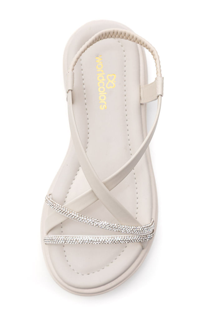 A Sandália World Colors Rasteira Juvenil Menina Strass 377.005-6 é confeccionada em material sintético de alta qualidade, garantindo leveza e durabilidade para o dia a dia. Possui fechamento com alça elástica na parte traseira, oferecendo ajuste seguro e facilidade ao calçar. Pertence à categoria de sandálias rasteiras, com sola plataforma baixa e texturizada, proporcionando estabilidade e conforto. O bico arredondado e a palmilha macia garantem conforto extra para os pés delicados das meninas. O design sofisticado apresenta tiras finas cruzadas na frente adornadas com strass brilhantes e uma tira larga sobre o peito do pé, conferindo brilho e charme. Estética delicada e funcional, perfeita para festas ou passeios, unindo beleza e praticidade em cada passo.
