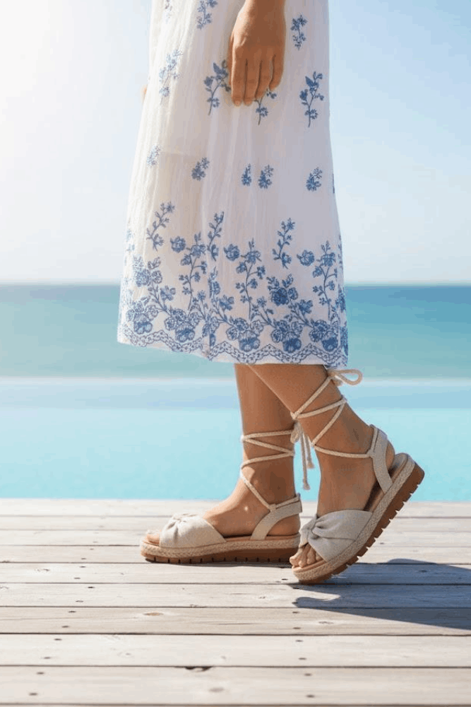 Combine a Sandália YOA Plataforma Feminina 6574 com um vestido midi fluido estampado para um almoço ao ar livre. Acrescente uma bolsa de palha estruturada e brincos dourados delicados para realçar o visual. Finalize com óculos de sol modernos e maquiagem leve, criando um look fresco, elegante e confortável, perfeito para ocasiões casuais com estilo natural.