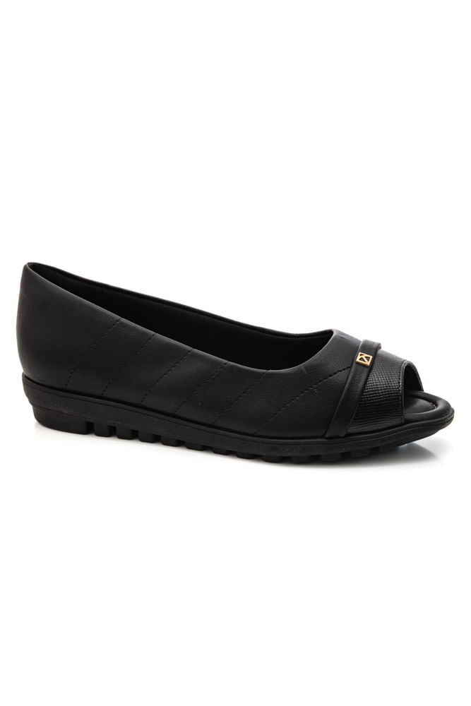 A Sapatilha Piccadilly Peep Toe Feminina 112005 pertence à categoria de calçados femininos confortáveis, ideal para o dia a dia e ambientes de trabalho. Confeccionada em couro napa de alta qualidade, conta com forro têxtil macio que proporciona bem-estar prolongado. O fechamento slip-on, sem cadarços, garante calce fácil e prático. O bico redondo com abertura peep toe traz leveza ao visual e melhor ventilação. Possui salto anabela baixo de 2,5 cm, que auxilia na distribuição do peso corporal, e solado em látex e borracha, oferecendo aderência e segurança. A palmilha anatômica e acolchoada aumenta o conforto, enquanto o design com costuras delicadas e detalhe frontal elegante valoriza a estética. Um grande benefício é o conforto contínuo, ideal para quem passa longas horas em pé.
