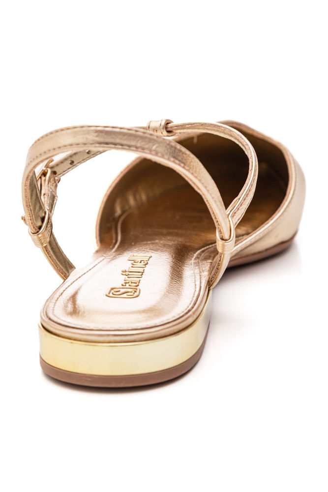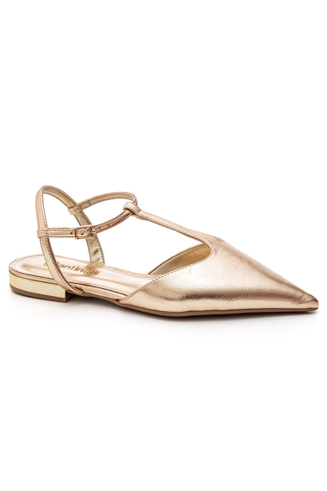 A Sapatilha Santinelli Slingback Feminino Bico Fino 1652-002 é perfeita para quem busca elegância e conforto no dia a dia. Pertencente à categoria de sapatilha slingback, possui cabedal em material sintético metalizado dourado, que confere brilho e sofisticação ao visual. O bico fino alonga a silhueta e adiciona um toque moderno e feminino. Conta com fechamento lateral por fivela ajustável, garantindo um encaixe seguro e delicado. A palminha macia e o solado de borracha antiderrapante oferecem conforto e estabilidade a cada passo. Seu design minimalista, com recortes elegantes e acabamento polido, valoriza tanto produções casuais quanto mais formais. Um calçado versátil e atemporal, que combina estilo, praticidade e charme em um único modelo.