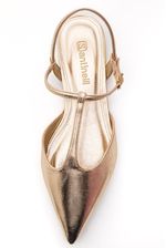 Para um look sofisticado de fim de tarde, combine a Sapatilha Slingback Santinelli dourada com um vestido midi branco fluido e bolsa tiracolo neutra. Complete com brincos dourados delicados e maquiagem leve. O toque metalizado da sapatilha traz elegância instantânea, ideal para eventos, jantares ou encontros que pedem conforto com estilo.