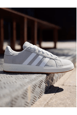 Para um passeio urbano ou encontro casual, combine o Tênis Adidas Grand Court Base IH6185 com jeans slim, camiseta básica e jaqueta leve. Acrescente um boné moderno e mochila compacta para praticidade. Esse look une conforto, estilo clássico e versatilidade, permitindo movimentos livres e segurança a cada passo, perfeito para o dia a dia com toque esportivo e sofisticado.