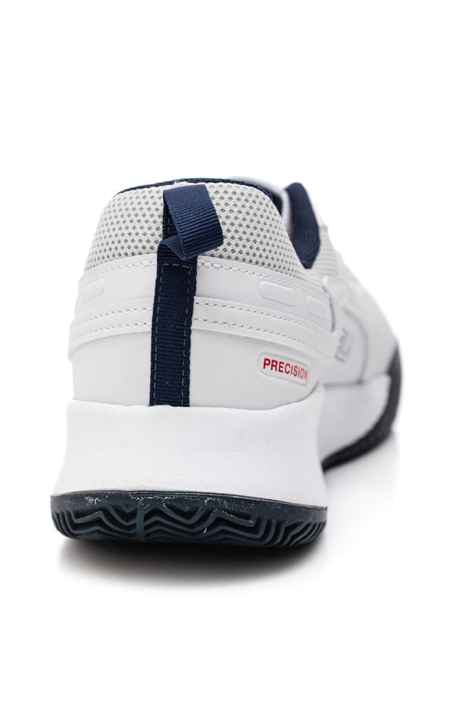 O Tênis Fila Precision Masculino F01tn00050-5502 apresenta cabedal em material laminado com painéis em mesh para ventilação e suporte. A biqueira é reforçada para proteção nas quadras. O fechamento é por atacador que permite ajuste firme. A construção alia resistência e leveza, com lingueta e colarinho acolchoados para conforto. A palmilha oferece amortecimento responsivo, enquanto a calcanheira garante estabilidade. O forro interno é macio e respirável. O solado integral de borracha possui ponto de giro no antepé, proporcionando grip, tração e liberdade de movimento. A entressola macia absorve impactos, ideal para controle e performance em saibro. Detalhes técnicos e design focam em durabilidade e estilo nas quadras.