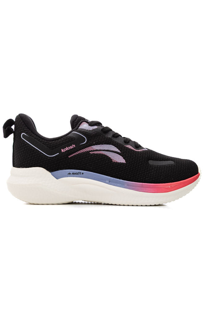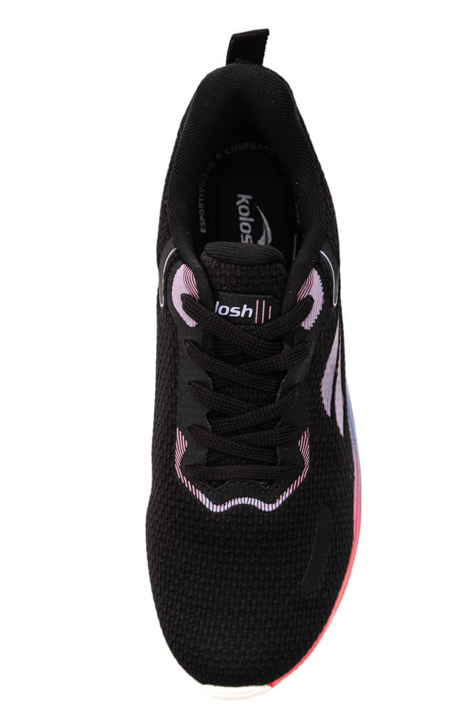 O Tênis Kolosh Penny Feminino Sola Em Evafit+ E0562-01 apresenta cabedal em material sintético com tecnologia Frequency sem costuras, oferecendo toque emborrachado e visual moderno com estampa linear em degradê. Possui biqueira arredondada, fechamento em cadarço e puxador traseiro que facilita o calce. A construção é leve, com lingueta macia, colarinho acolchoado, forro confortável, palmilha Impulse+ de memória inteligente e calcanheira aconchegante. A sola EVAFit+ ultraleve, com 5,3 cm, garante excelente amortecimento e absorção de impacto, além de tração estável para o dia a dia. O design esportivo e contemporâneo traz pintura lateral em degradê, oferecendo estilo e conforto como benefício principal.