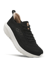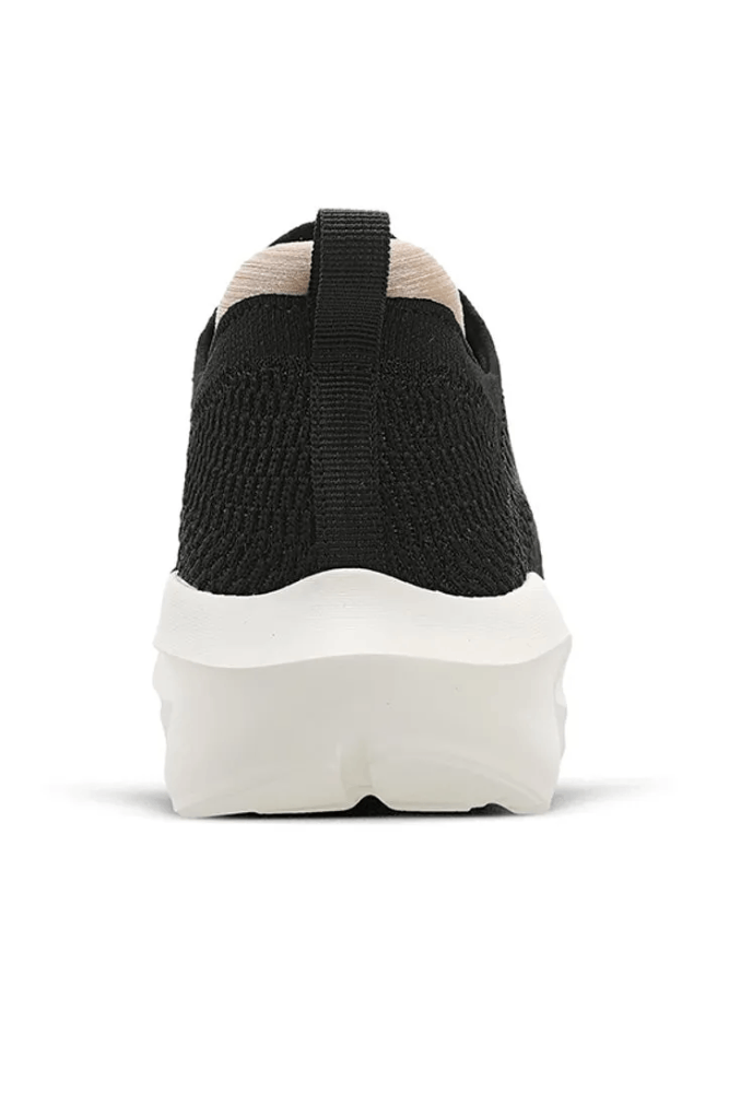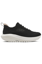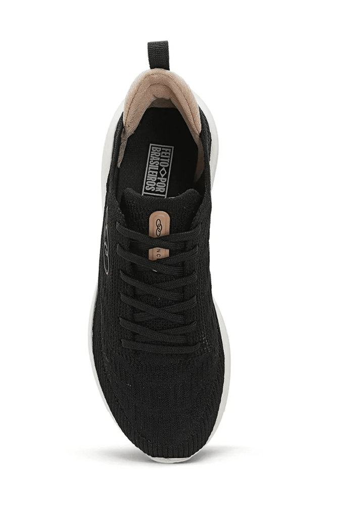 O Tênis Olympikus Lance Feminino Caminhada -Pto possui cabedal em malha tecnológica Hypersox, com design anatômico que se ajusta como uma meia, leve e flexível. Fabricado em material têxtil com elastano, garante respirabilidade e conforto. A biqueira é integrada ao cabedal, sem costuras aparentes, favorecendo a flexibilidade. O fechamento é por cadarço em poliéster texturizado, com atacador firme. A construção tipo slip-on com puxador traseiro em fita facilita o calce. A lingueta é embutida ao cabedal, e o colarinho em malha elástica abraça o tornozelo com suavidade. A palmilha é em EVA com forração em poliéster, e a calcanheira acolchoada oferece suporte. O forro interior em poliéster proporciona toque macio. O solado é de EVA com tecnologia Eleva+, garantindo amortecimento responsivo e efeito trampolim. Possui drop moderado, tração eficiente e grip em diferentes superfícies. Estilo esportivo com design moderno e detalhe de trama em relevo no cabedal.