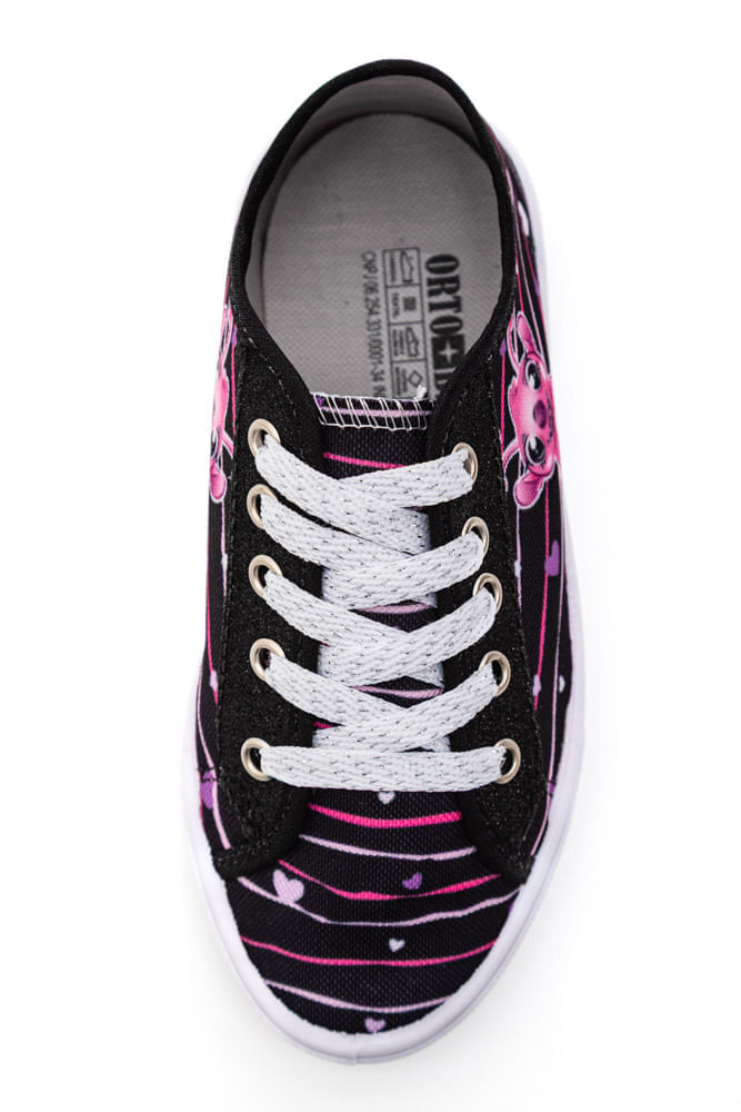 O Tênis Ortobessa Casual Infantil Menina Estampa 24-I, é a escolha ideal para unir conforto, estilo e diversão no dia a dia das pequenas. Pertencente à categoria de calçados casuais infantis, possui cabedal em tecido resistente com estampa vibrante e lúdica de personagem rosa sobre listras pretas e corações, garantindo um visual encantador. A sola é em PVC, proporcionando maior segurança e aderência. O bico redondo oferece conforto para os dedinhos, enquanto o fechamento por cadarço facilita o ajuste ideal aos pés. A palmilha macia e a calcanheira acolchoada garantem bem-estar ao longo do uso. O acabamento interno é suave, pensado para o uso prolongado sem incômodos. Um benefício marcante é a combinação de design divertido com estrutura confortável, ideal para acompanhar as aventuras infantis com estilo e proteção.