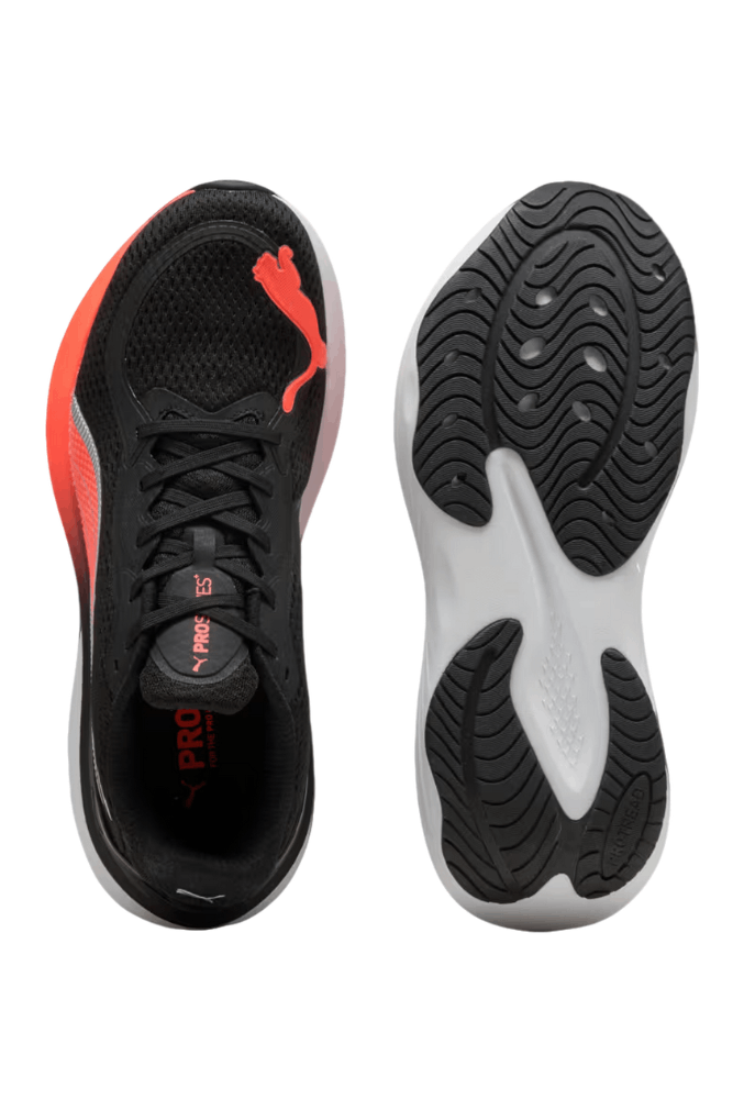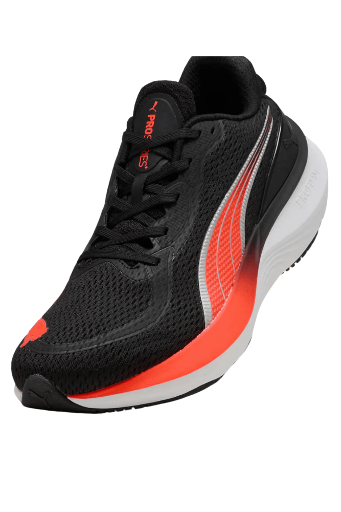 O Tênis Puma Scend Pro 2 De Corrida Masculino 310779 10 possui cabedal em mesh premium com pelo menos 30% de materiais reciclados, garantindo respirabilidade e sustentabilidade. A biqueira é arredondada e o fechamento é por cadarço, com puxador traseiro para facilitar o calce. A lingueta e o colarinho são acolchoados, proporcionando conforto extra. A palmilha oferece amortecimento médio, enquanto a calcanheira reforçada garante suporte ao calcanhar. O forro interno é macio, ideal para uso prolongado. O solado é feito em borracha ProTread, com excelente grip e tração para diversas superfícies. A entressola em ProFoam leve assegura absorção responsiva de impacto e impulso para a corrida. O design é moderno, com detalhes da marca Puma e modelagem performance para máxima eficiência.
