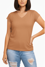 Blusa Chá De Mel Em Malha Feminina Manga Curta 573 Caramelo
