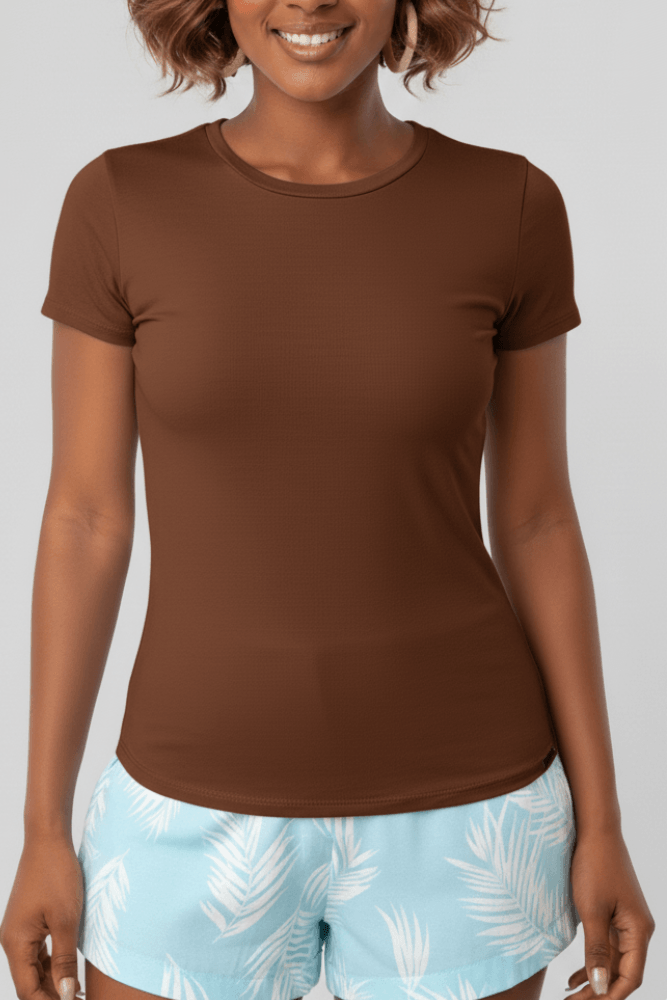 Blusa Manga Curta Lunender Cotton 00019 Marrom