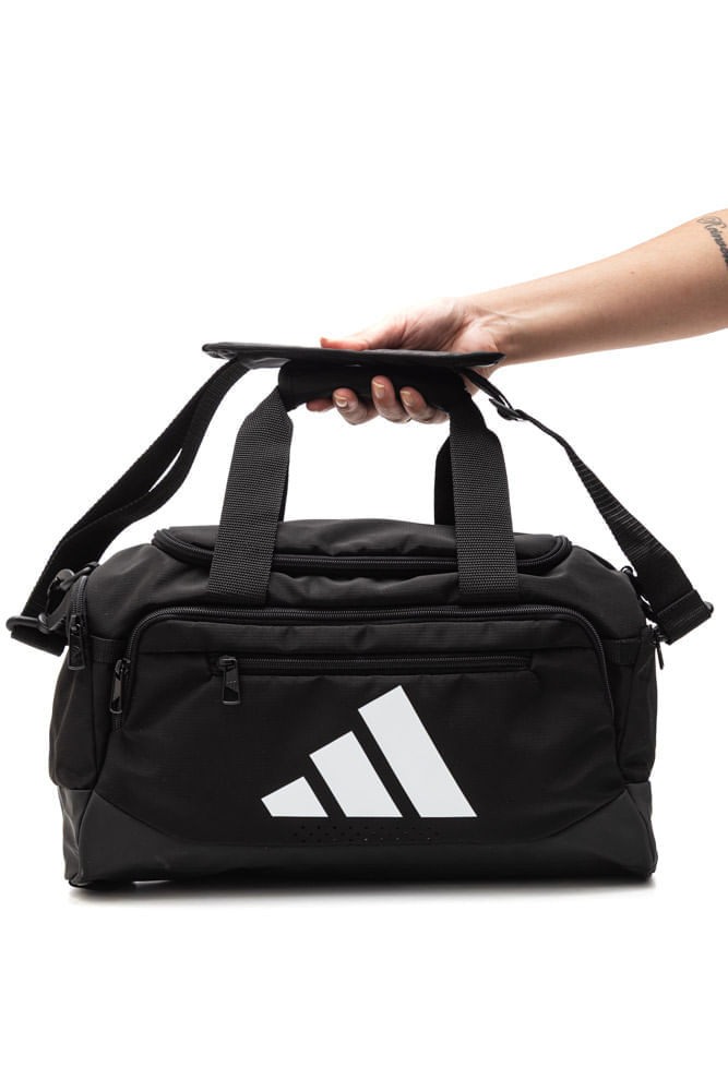 A Bolsa Adidas Tradef Duf Esportiva Jz0609 é fabricada em 100% poliéster, oferecendo leveza, resistência e fácil manutenção. Possui capacidade de 31,2 litros e dimensões aproximadas de 26 x 49 x 19 cm, ideal para academia, treinos ou viagens curtas. Conta com compartimento principal amplo, facilitando a organização dos pertences. Dispõe de bolso frontal com zíper para calçados e bolso traseiro com zíper para itens menores. O fechamento em zíper bidirecional garante praticidade e segurança. As alças incluem duas de mão e uma alça de ombro ajustável, oferecendo versatilidade no transporte. O design esportivo em preto com logo adidas estampado reforça o estilo moderno. O acabamento é funcional e bem estruturado, pensado para o uso diário e esportivo.