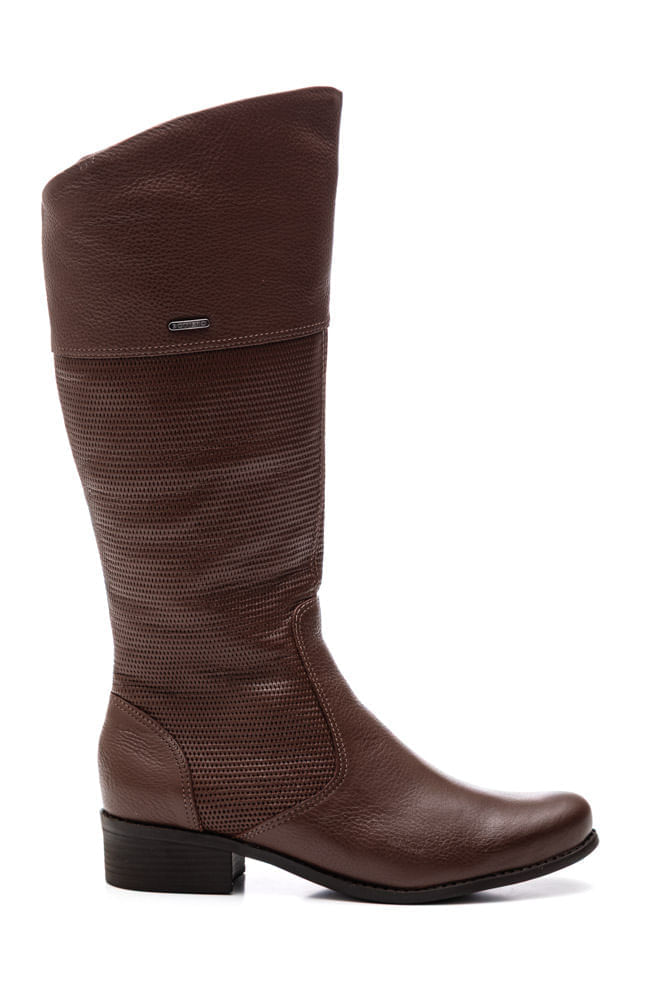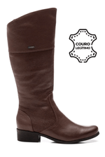 A Bota Bottero Cano Alto Montaria Feminina Couro 345807 é a escolha ideal para quem busca elegância e conforto em um só produto. Feita em couro burnish wood, sua estrutura proporciona resistência e sofisticação, enquanto o revestimento interno assegura maciez ao toque. O cano tem 34 cm de altura e circunferência de 37,5 cm, ideal para dar o ajuste perfeito. O salto baixo de 3,5 cm oferece estabilidade sem abrir mão do estilo, com formato bloco, garantindo maior conforto ao caminhar. O bico redondo complementa o design clássico e moderno. A bota conta com fechamento por zíper na lateral interna, tornando o calce rápido e prático. O solado de borracha antiderrapante proporciona segurança, e o acabamento impecável garante durabilidade para diversas estações.