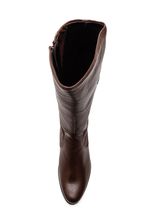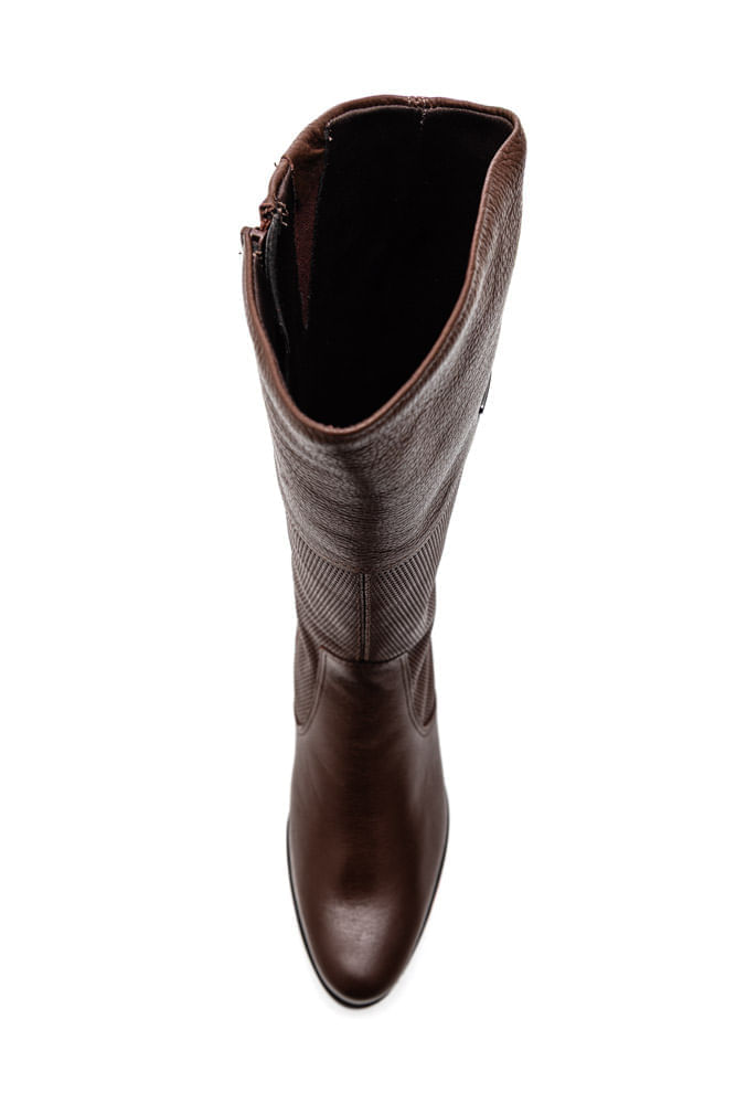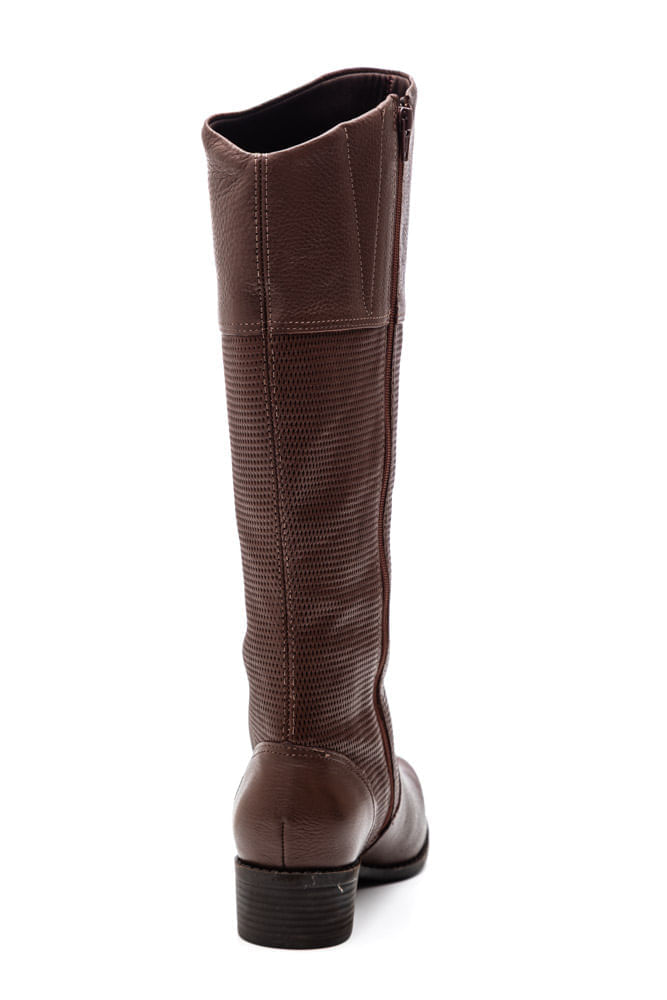Para uma ocasião especial, combine a Bottero Cano Alto Montaria com um vestido midi preto e jaqueta de couro. A bota traz sofisticação com seu couro burnish wood e salto baixo, enquanto o look equilibrado entre clássico e moderno garante elegância e conforto. Complete com acessórios discretos, como bolsa de mão e óculos de sol.