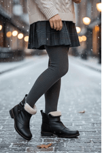 A Bota Bottero Cano Baixo Feminina Couro Burnish 361723 combina estilo, conforto e praticidade em um design moderno e acolhedor. Confeccionada em couro Burnish com textura levemente enrugada, oferece durabilidade e um visual sofisticado. O cabedal é complementado por costuras aparentes que reforçam a estrutura e agregam charme. O revestimento interno é forrado em lã sintética, ideal para dias mais frios, com detalhes em lã que se dobram na borda do cano curto de aproximadamente 12 cm de altura e 29 cm de circunferência, criando um colarinho macio e elegante. O fechamento é por zíper lateral, prático e funcional. O salto baixo, em bloco com cerca de 3 cm, oferece estabilidade, enquanto o solado de TR antiderrapante garante segurança ao caminhar. Com bico arredondado e detalhe de tira em couro decorativa, é perfeita para quem busca conforto com personalidade.