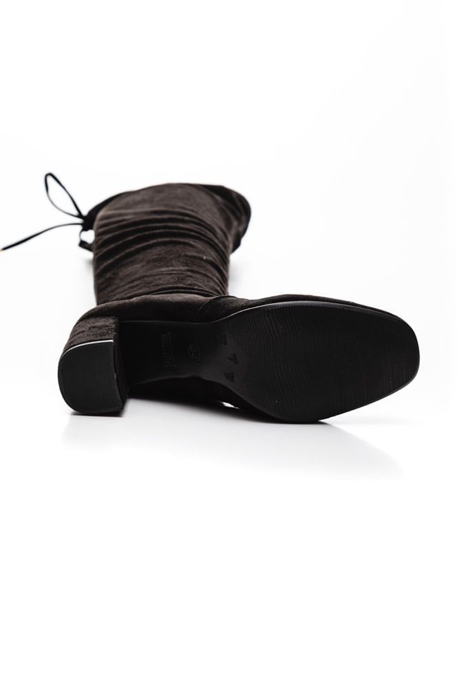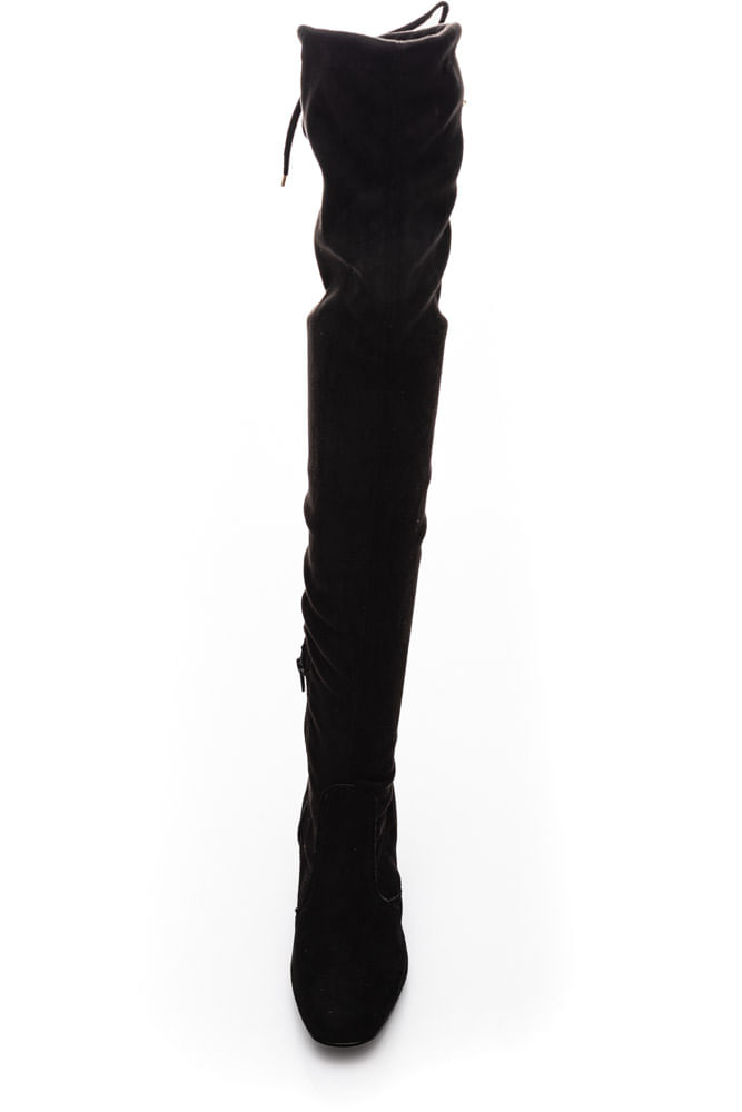 Esta bota passa um ar mais ousado quando se trata de composição. Também conhecida como “bota maxi”, ou “over the knee”, ela possui um cano superior ao joelho podendo chegar até o meio da coxa.