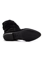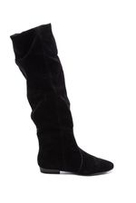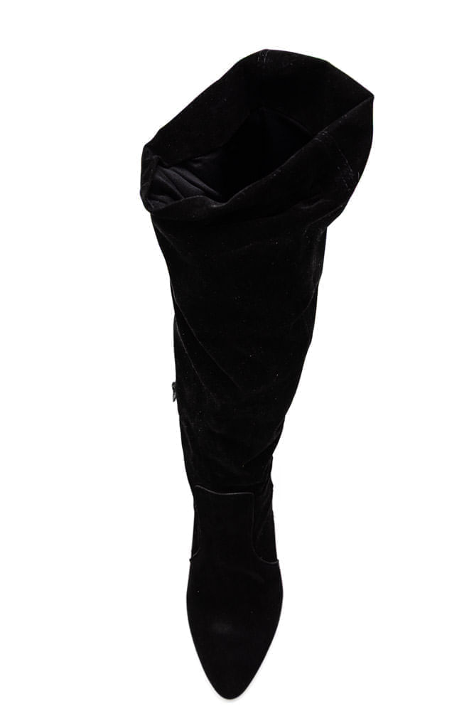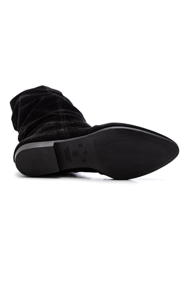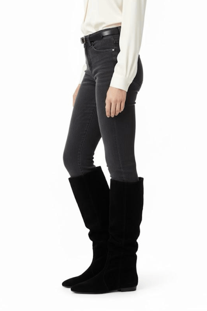"Slouchy" é um estilo de bota com cano mais largo e maleável, que cria um efeito franzido ou enrugado ao redor da perna.