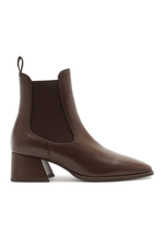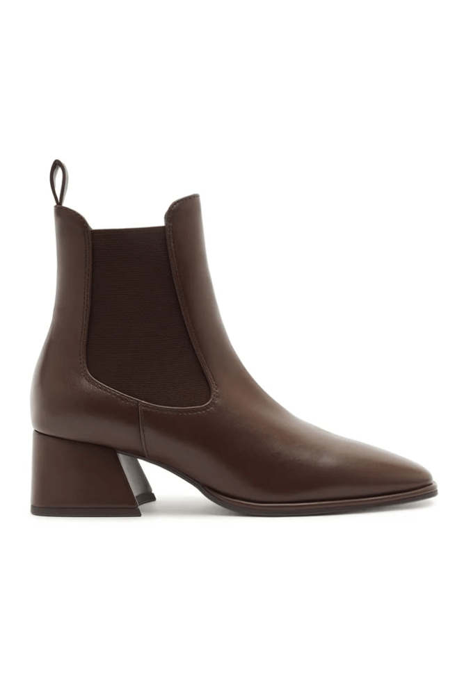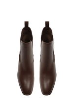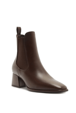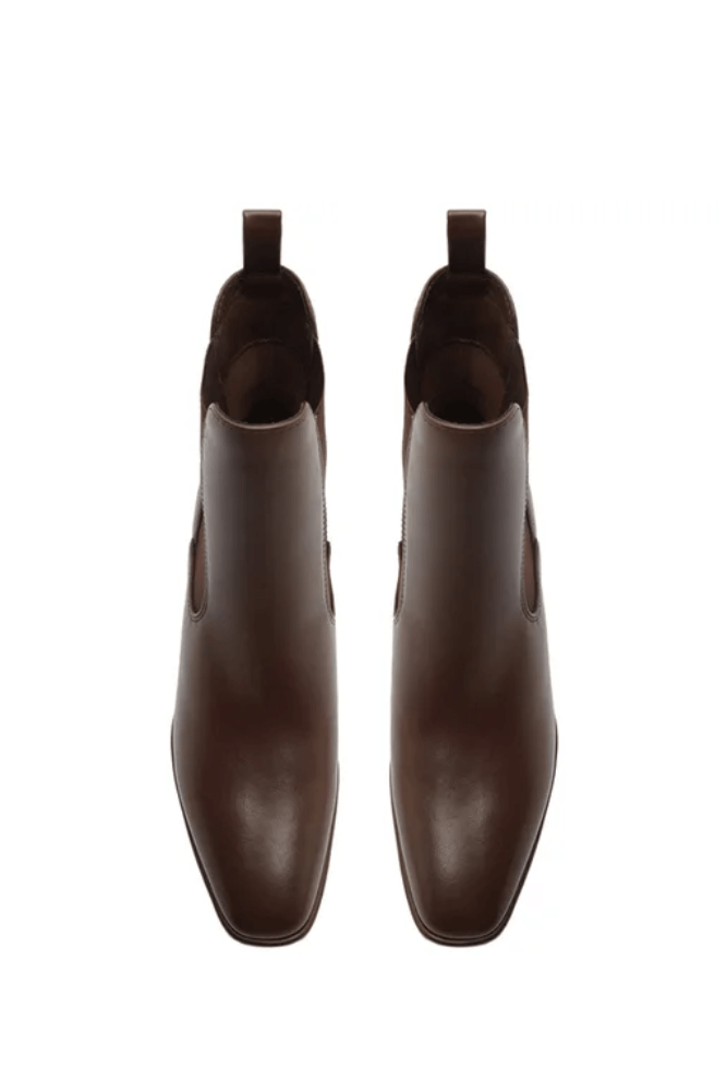 Eleve seu guarda-roupa de outono-inverno com esta bota Chelsea que redefine a sofisticação. Confeccionada em couro premium na cor marrom profunda e rica, este modelo é mais do que um calçado, é uma peça de declaração. O design limpo e minimalista é elevado por dois detalhes de design distintos: o bico quadrado refinado e um impressionante salto bloco arquitetônico. O salto não é apenas uma base estável, mas uma obra de arte, com um padrão gravado inspirado no estilo Art Deco que capta a luz e adiciona textura visual.