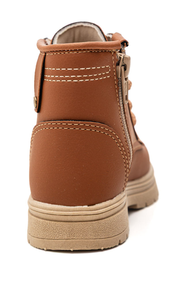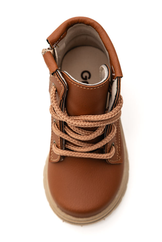 A Bota Coturno Grugui Infantil Menino 2022-274 é confeccionada com cabedal em material sintético resistente que proporciona durabilidade e proteção para o uso diário. O revestimento interno em tecido têxtil macio oferece conforto e mantém os pés bem acomodados durante as atividades. O cano possui estrutura firme de altura média, com aproximadamente 10 cm de altura e cerca de 24 cm de circunferência, oferecendo bom suporte ao tornozelo. A palmilha macia auxilia no conforto da pisada. O bico apresenta formato arredondado que favorece o ajuste natural dos pés. O fechamento é feito por cadarço frontal aliado a zíper lateral que facilita o calce. O solado em borracha TR antiderrapante possui base tratorada que melhora a tração e a estabilidade em diferentes superfícies. A base do solado possui estrutura levemente elevada de aproximadamente 2 cm, contribuindo para maior firmeza e estabilidade ao caminhar. O acabamento reforçado valoriza a resistência e a durabilidade do modelo.