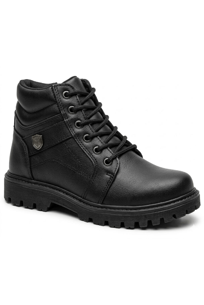 A Bota Coturno Grugui Infantil Menino 212-298 é confeccionada com cabedal em material sintético resistente que oferece durabilidade e proteção para o uso diário das crianças. O revestimento interno em material têxtil acolchoado proporciona conforto e bem estar durante todo o dia. O cano possui estrutura firme de altura média, com aproximadamente 10 cm de altura e cerca de 24 cm de circunferência, oferecendo bom suporte ao tornozelo. A palmilha macia contribui para uma pisada mais confortável. O bico apresenta formato arredondado que favorece o ajuste natural dos pés. O fechamento é realizado por cadarço frontal aliado a zíper lateral que facilita o calce. O solado em borracha TR antiderrapante possui base tratorada que melhora a tração em diferentes superfícies. A base conta com elevação aproximada de 3 cm que contribui para estabilidade ao caminhar. O acabamento reforçado valoriza a resistência e a durabilidade do modelo.