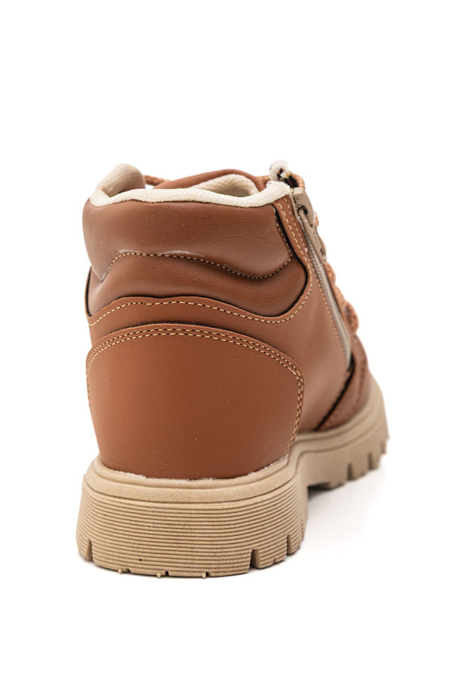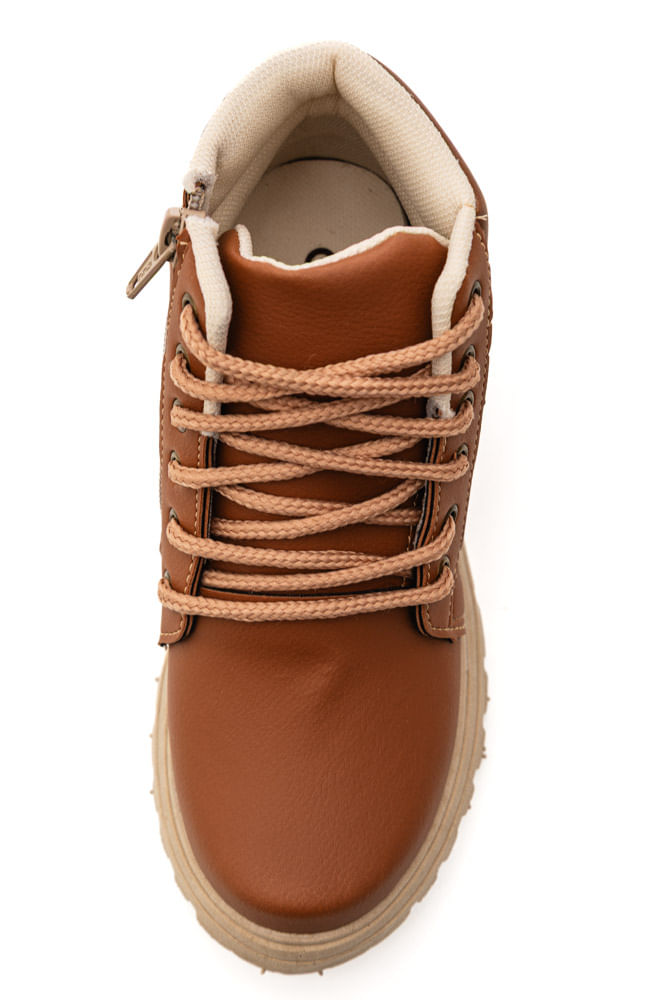 A Bota Coturno Grugui Juvenil Menino 212-294 é confeccionada com cabedal em material sintético resistente que proporciona durabilidade e proteção para o uso diário. O revestimento interno em material têxtil acolchoado oferece conforto e bem estar durante todo o dia. O cano possui estrutura firme de altura média, com aproximadamente 11 cm de altura e cerca de 26 cm de circunferência, garantindo bom suporte ao tornozelo e estabilidade ao caminhar. A palmilha em EVA macio contribui para uma pisada mais confortável e pode ser removida para facilitar a higienização. O bico possui formato arredondado que favorece o ajuste natural dos pés. O fechamento é realizado por cadarço frontal aliado a zíper lateral que facilita o calce. O solado em borracha micro expandida antiderrapante apresenta base tratorada que melhora a tração. A base possui elevação aproximada de 3 cm que contribui para firmeza e estabilidade. O acabamento reforçado valoriza a resistência e a durabilidade do modelo.