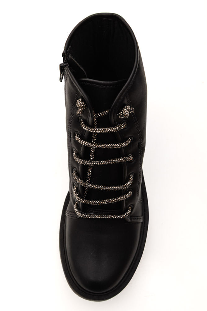 A Bota Coturno Moleca Feminina Cadarço Com Strass 5339.110.23580 une atitude, conforto e um toque de brilho para o dia a dia. O cabedal é confeccionado em napa sintética, resistente e de fácil manutenção, enquanto o revestimento interno em material têxtil proporciona conforto ao longo do uso. O cano é curto, estruturado, com cerca de 14 cm de altura e circunferência aproximada de 26 cm, garantindo bom ajuste ao tornozelo. A palmilha macia contribui para maior bem-estar. O solado emborrachado antiderrapante, com acabamento tratorado, oferece segurança e durabilidade. Possui bico redondo e salto baixo em bloco, com aproximadamente 3,5 cm, assegurando estabilidade ao caminhar. O fechamento é por zíper lateral, com cadarço decorativo não funciona com aplicação de strass, e acabamento caprichado que valoriza qualquer look urbano.