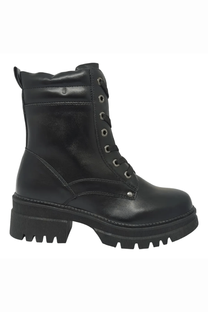 A Bota Coturno Mooncity Feminina 72270 é confeccionada em material sintético de alta qualidade com acabamento liso e resistente, ideal para o uso diário. Possui revestimento interno têxtil acolchoado que proporciona conforto e evita atritos. Seu cano médio mede aproximadamente 15 cm de altura, com circunferência entre 26 e 28 cm, ajustável pelo cadarço. Conta com palmilha macia em EVA e solado em borracha antiderrapante tratorada, garantindo segurança e estabilidade. O bico é arredondado para melhor acomodação dos pés. O salto bloco mede cerca de 4,5 cm com meia pata de 2,5 cm, oferecendo firmeza ao caminhar. O fechamento é por cadarço com zíper lateral que facilita o calce, e o acabamento reforçado assegura durabilidade e estilo urbano marcante.