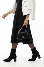 Para um passeio urbano ou encontro casual, combine a Bota Dakota Cano Médio Knit G9906-01 com uma calça jeans skinny escura, camiseta básica branca e jaqueta leve em tom neutro. Acessórios discretos, como bolsa tiracolo e brincos pequenos, completam o look. O salto bloco médio garante conforto e estilo, tornando o visual moderno, elegante e perfeito para o dia a dia.
