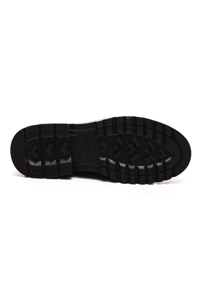 A Bota Democrata Garage Eron Masculina é confeccionada em couro preto, oferecendo um cabedal robusto e resistente. O modelo possui um bico arredondado e um fechamento em cadarço de amarrar, garantindo um ajuste seguro. A coloração uniforme e o design rústico e elegante destacam-se na peça, ideal para homens de vanguarda. A construção ergonômica proporciona conforto durante o uso prolongado, com uma palmilha de fibra e forro de tecido macio. O solado em borracha assegura durabilidade e maleabilidade, além de proporcionar excelente tração. A calcanheira acolchoada adiciona suporte extra ao calcanhar, aumentando a comodidade. Detalhes sutis de costura reforçam a qualidade artesanal da bota, que combina perfeitamente força, design e personalidade.