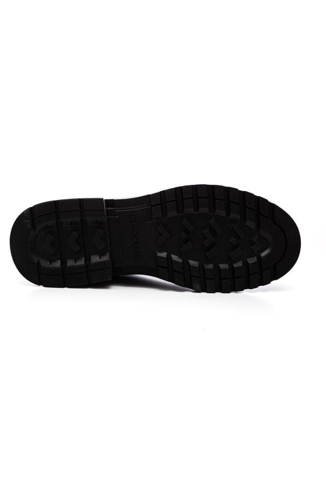 A Bota Democrata Garage Eron Masculina é confeccionada em couro preto, oferecendo um cabedal robusto e resistente. O modelo possui um bico arredondado e um fechamento em cadarço de amarrar, garantindo um ajuste seguro. A coloração uniforme e o design rústico e elegante destacam-se na peça, ideal para homens de vanguarda. A construção ergonômica proporciona conforto durante o uso prolongado, com uma palmilha de fibra e forro de tecido macio. O solado em borracha assegura durabilidade e maleabilidade, além de proporcionar excelente tração. A calcanheira acolchoada adiciona suporte extra ao calcanhar, aumentando a comodidade. Detalhes sutis de costura reforçam a qualidade artesanal da bota, que combina perfeitamente força, design e personalidade.