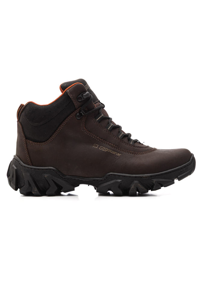 A Bota Gogowear Trilha Adventure Everest-Ii Masculino Couro possui cabedal todo em couro premium com acabamento macio e aveludado, garantindo durabilidade e proteção aos pés. O material de fabricação é couro resistente com construção reforçada e costuras duráveis. O bico é arredondado e o fechamento é por cadarço em poliéster de alta resistência. O cano médio possui aproximadamente 16 cm de altura e circunferência ajustável, sem salto, com solado robusto em borracha antiderrapante Power Grip. A palmilha anatômica em PU é antibacteriana, ventilada e confortável, enquanto a calcanheira e biqueira termoplástica oferecem proteção extra. O forro interno em tecido antibacteriano de alta gramatura aumenta a durabilidade. O estilo é aventureiro e esportivo, ideal para trilhas e lazer, com design que destaca o reforço da biqueira e contraforte com detalhe funcional exclusivo.