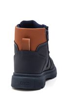 A Bota Klin Infantil Menino 365.019-5936 possui cabedal em material sintético resistente, revestimento interno em tecido têxtil acolchoado que garante conforto, cano médio com aproximadamente 10 cm de altura e circunferência de 22 cm com ajuste por cadarço, estrutura firme e anatômica, palmilha macia que auxilia no bem-estar, solado tratorado em borracha TR antiderrapante que proporciona estabilidade, bico arredondado, solado baixo de cerca de 2,5 cm em formato bloco oferecendo segurança ao caminhar, fechamento por cadarço frontal e zíper lateral que facilita o calce, acabamento durável com visual moderno e versátil ideal para o uso diário com conforto e proteção.