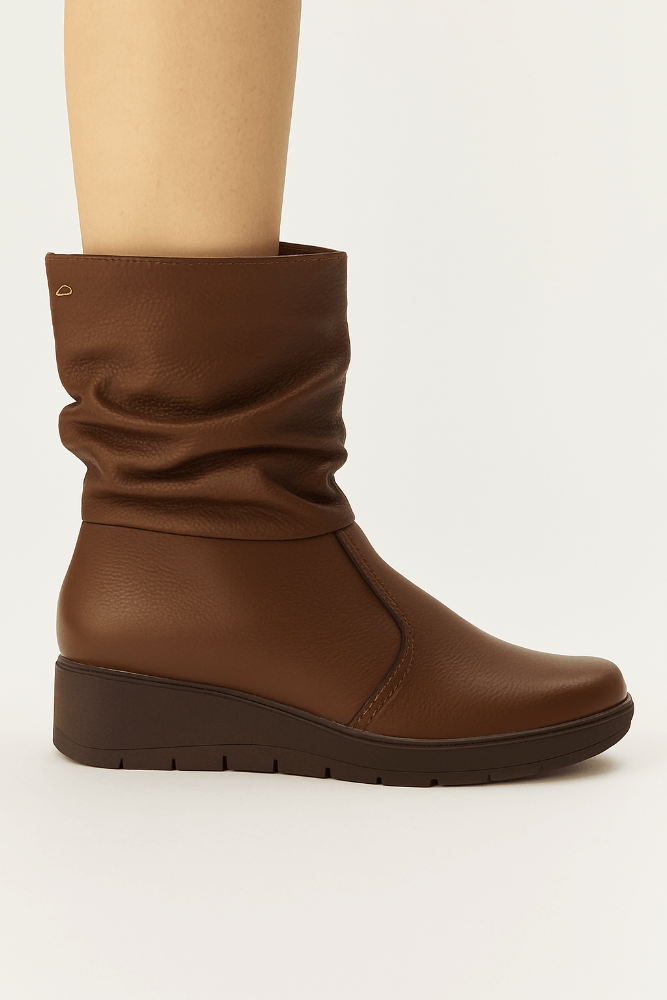 A Bota Pegada Anabela Feminina Em Couro 280801-02 é perfeita para quem busca elegância com extremo conforto. Produzida em couro legítimo, ela apresenta acabamento burnished que realça a sofisticação do modelo. Seu cabedal em couro macio e o forro interno em tecido Bariloche garantem pés aquecidos e aconchegados. Com cano médio de aproximadamente 16 cm de altura e circunferência de 29 cm, o modelo oferece versatilidade no uso, podendo ser dobrado, seguindo a tendência Slouch. A palmilha conta com a tecnologia Amortech Blue Memory Foam. O solado é em TR com a tecnologia Bubble Impact, antiderrapante e durável. O salto médio em formato anabela proporciona estabilidade e conforto. Com bico redondo e fechamento por zíper lateral, essa bota une estilo, durabilidade e bem-estar.