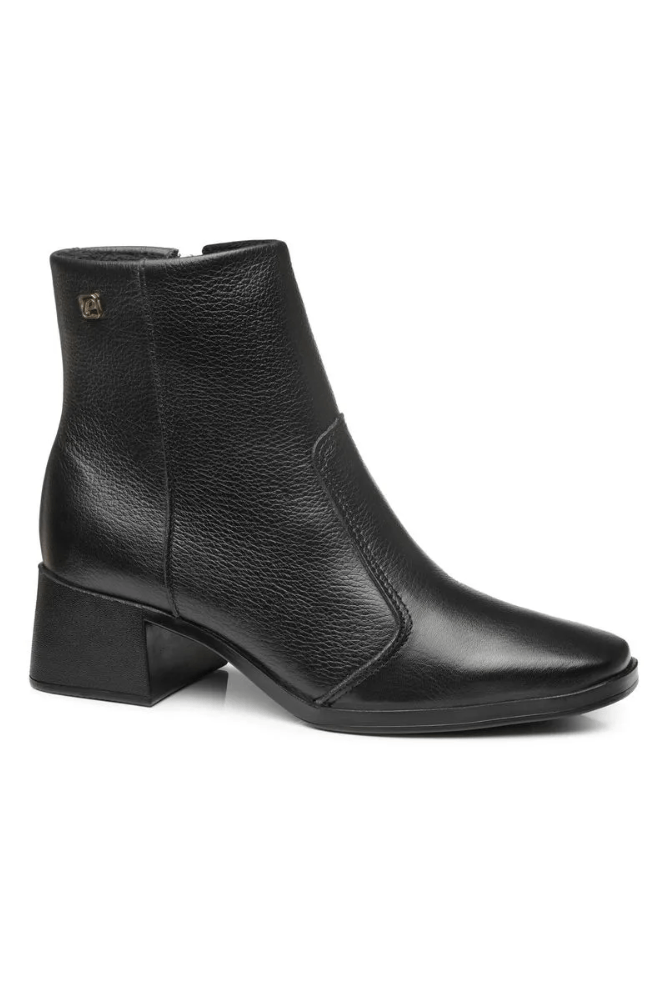 A Bota Pegada Casual Feminina Em Couro Soft Touch 282301 é a escolha ideal para quem busca estilo e conforto no dia a dia. Feita em couro legítimo com acabamento SOFT TOUCH, seu cabedal proporciona toque macio e visual sofisticado. O forro em tecido atoalhado garante um calce suave, enquanto a palmilha macia e a calcanheira reforçada aumentam o bem-estar ao caminhar. Seu cano curto de 14 cm e circunferência de 28 cm envolvem o pé com elegância. O salto bloco de 5 cm, levemente inclinado, inspira-se na famosa torre de Pisa, unindo estilo e estabilidade. O bico quadrado dá um charme moderno, e o zíper lateral facilita o calce. Benefício principal: conforto absoluto sem abrir mão da elegância.