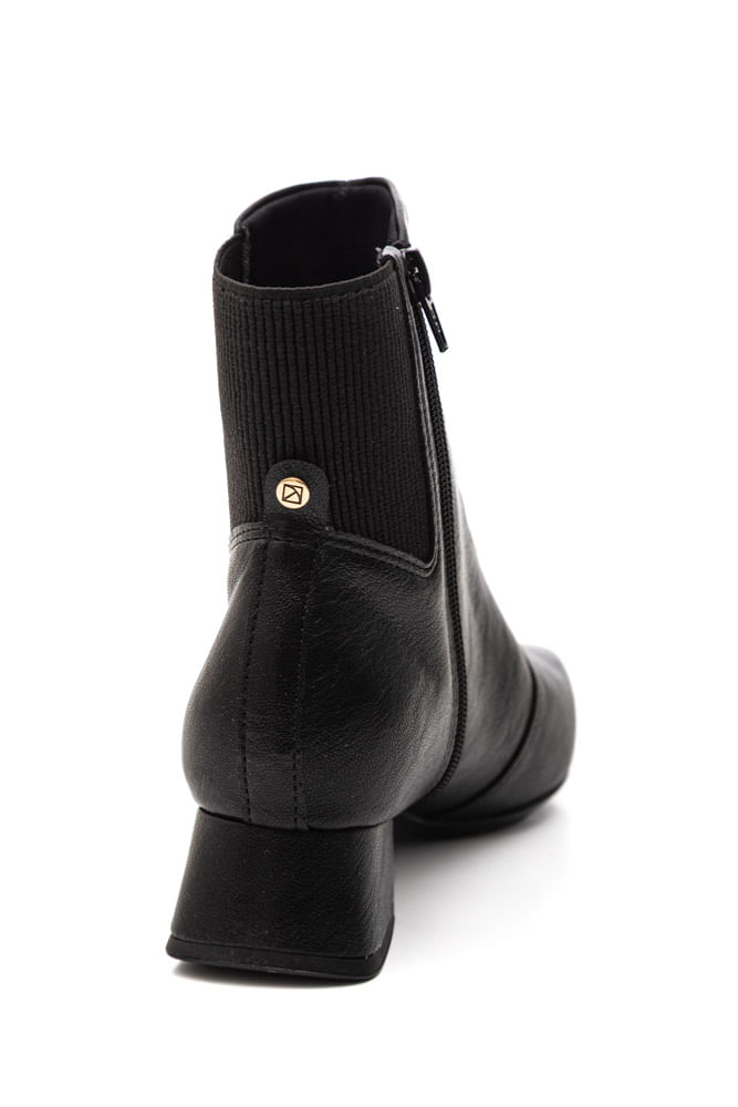 A Bota Piccadilly Tati Feminina Ankle Boot 160117 é confeccionada em napa stretch skin com elastano canelado, oferecendo ajuste flexível e confortável ao pé. Possui revestimento interno em material têxtil macio, que contribui para melhor respirabilidade e conforto térmico. Seu cano é curto, característico do modelo ankle boot, com altura aproximada entre 12 e 15 cm e circunferência média entre 24 e 28 cm, garantindo praticidade no uso diário. A palmilha conta com tecnologia de super conforto e estabilidade, ideal para longos períodos em pé. O solado em borracha antiderrapante proporciona segurança e aderência. O bico é arredondado e o salto é médio, em formato bloco com cerca de 3,5 cm, oferecendo estabilidade. O fechamento é realizado por zíper lateral aliado ao elastano, com excelente durabilidade e acabamento refinado.