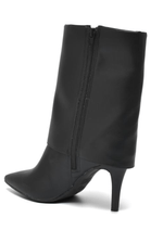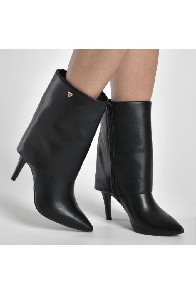 A Bota Via Marte Capa Feminina Cano Médio 343-005-01 possui cabedal confeccionado em material sintético de alta qualidade, com acabamento liso e construção estruturada que valoriza o visual sofisticado. Apresenta bico fino que alonga a silhueta e fechamento em zíper lateral interno, facilitando o calce. O cano médio possui aproximadamente 20 cm de altura e circunferência de cerca de 31 cm, proporcionando ajuste elegante. Conta com salto fino tipo stiletto de aproximadamente 9 cm, garantindo postura refinada. Possui palmilha macia, calcanheira estruturada e forro interno têxtil confortável. O solado é feito em material sintético resistente com boa aderência. Seu estilo é moderno e elegante, com design capa foldover e detalhe em pin metálico discreto que destaca a exclusividade do modelo.