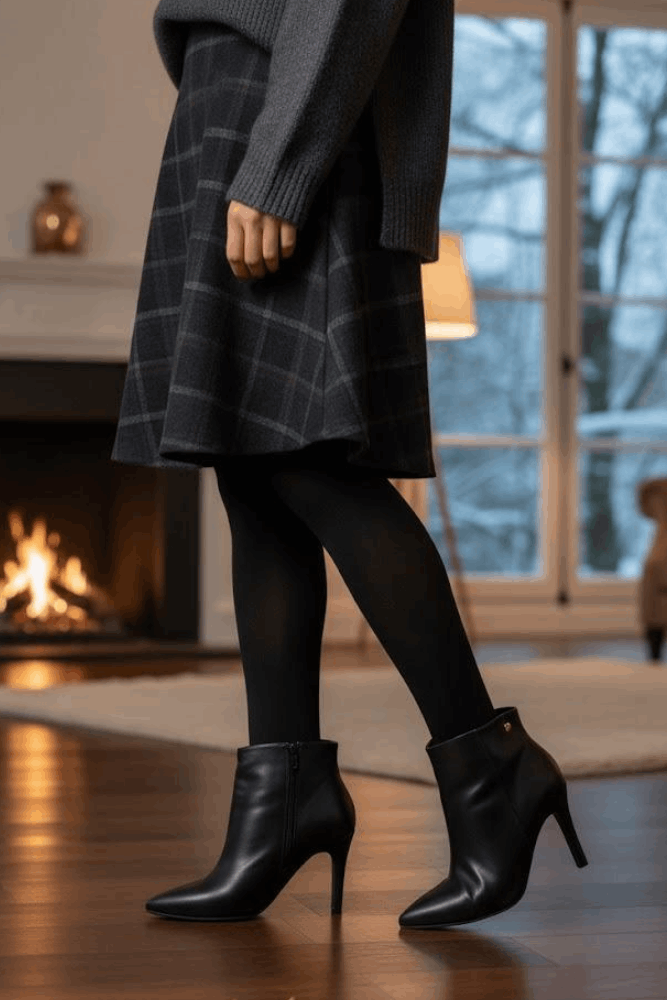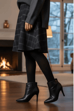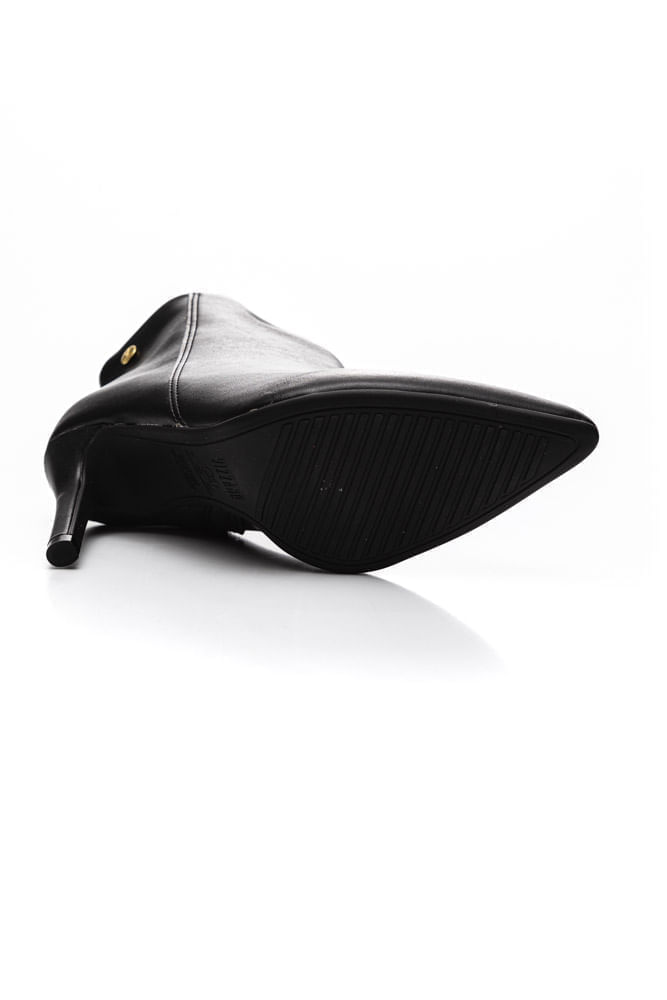 Inspirada no modelo scarpin com bico fino, cano curto terminando próximo a linha do tornozelo.